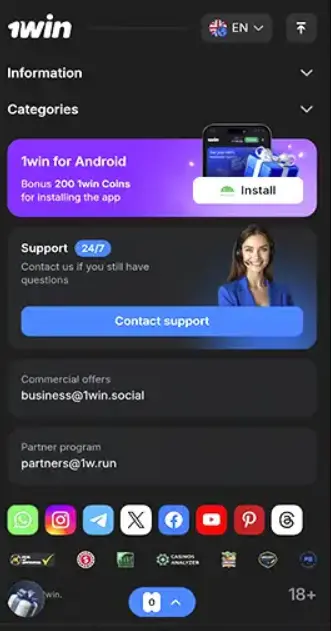 1Win Apps Menu