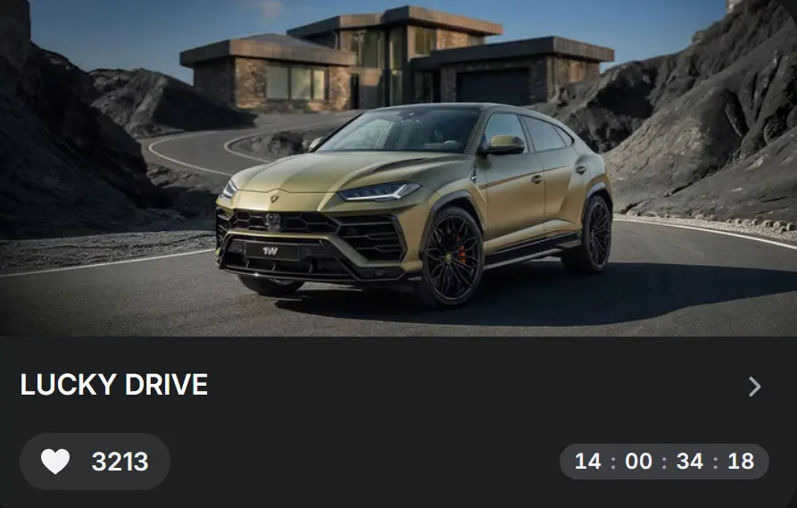 Lucky Drive is a ticket-based raffle that runs for approximately one month per cycle. During the promotion period, eligible players visit the Lucky Drive page daily and collect one ticket per day. At the end of the period, all collected tickets are entered into a random draw. The more tickets you have accumulated, the more chances you have of winning a prize.