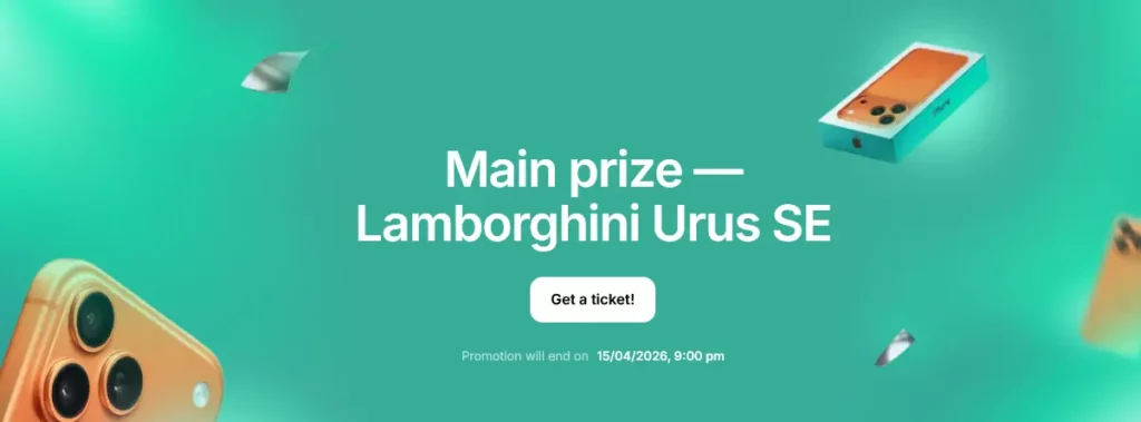 Lucky Drive is 1Win’s recurring prize draw where players collect daily tickets for a chance to win physical prizes including a Lamborghini and Apple or other tech devices. The current edition runs from 15 March 2026 to 15 April 2026, with the draw taking place on 15 April 2026.