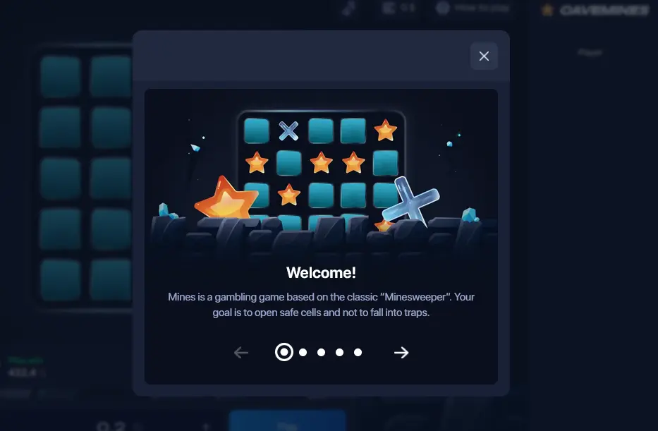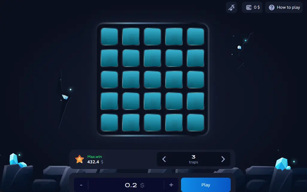 The game is inspired by the classic Minesweeper format, but here the goal is not to clear the entire board. The goal is to open as many safe cells as you choose, then cash out before hitting a mine. You decide how many mines are on the board before each round, which directly controls how risky — and how rewarding — each step is.