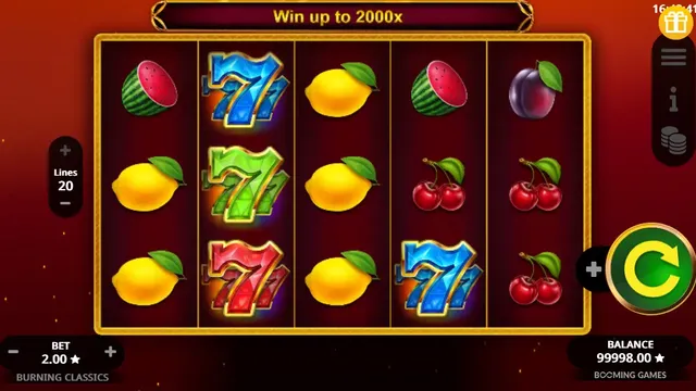Play Burning Classics at 1Win — Booming Games' 5×3 retro fruit slot with stacked Wilds, adjustable paylines, and a 2,000x maximum win