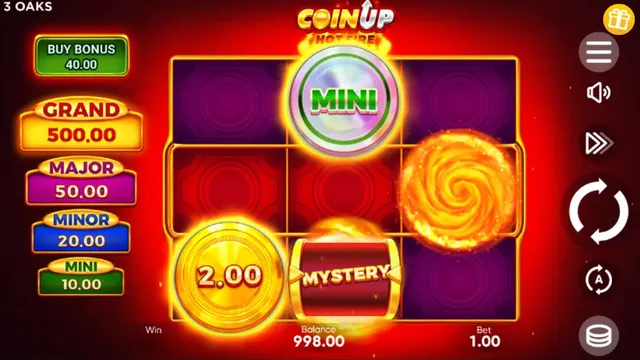 Play Coin Up: Hot Fire at 1Win — 3 Oaks Gaming's single-payline Hold & Win slot with Coin-Up transforms, Mystery Jackpots, and a 500x Jackpot