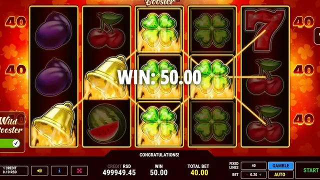 Play Very Hot 40 Booster at 1Win — Fazi's 96.44% RTP classic slot with 40 paylines, Wild Booster reel expansion, and 2,000x max win