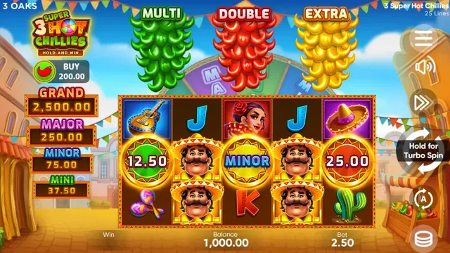 Play 3 Hot Chilli Peppers at 1Win — Iron Dog Studio's fiery slot with Hold and Spin, three special coin modifiers, 5,000x jackpot