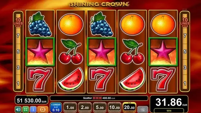 Play Shining Crown at 1Win by EGT — a classic fruit slot with expanding wilds, four-level progressive jackpot, gamble feature, 96.37% RTP